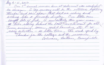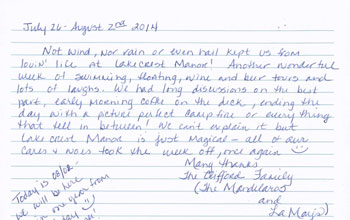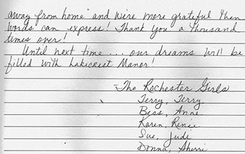 Excerpts from the Lakecrest Manor Guest Book (click images for larger view)